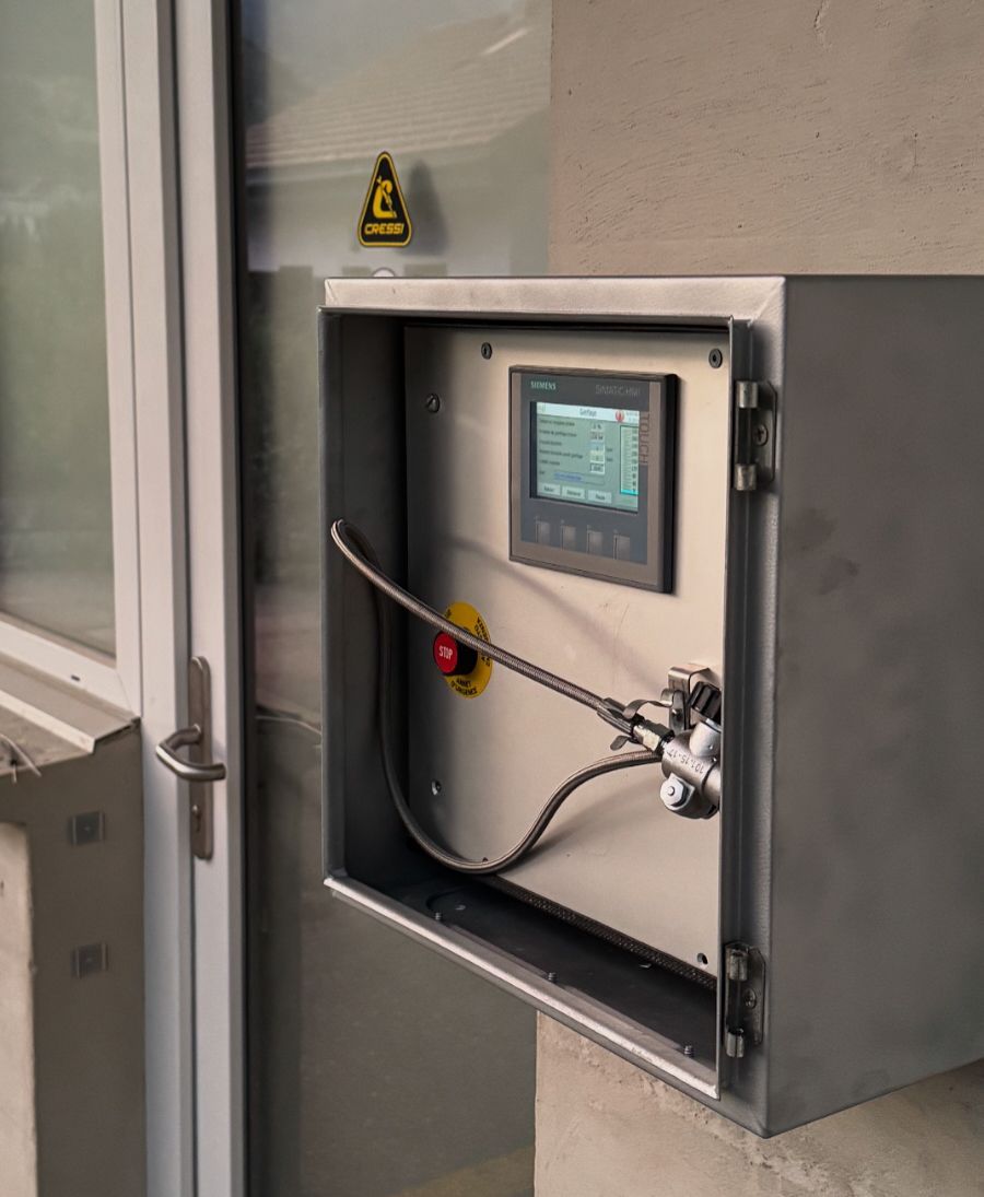 Notre compresseur station de gonflage de bouteilles de plongée est disponible en libre service tous les jours de la semaine avec votre code personnel.